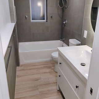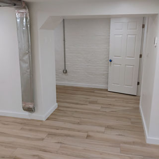 This basement renovation was designed to transform this space into a separate legal rental unit. The project required all new framing, plumbing, electrical, fire-stopping, insulation, doors, windows, drywall, luxury vinyl plank flooring, tile, fixtures, cabinets, quartz countertops, appliances, etc.