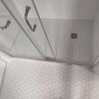 This NW Washington DC bathroom renovation was in a high-rise condo apartment building. The renovation consisted of replacing all bathroom fixtures and tile.