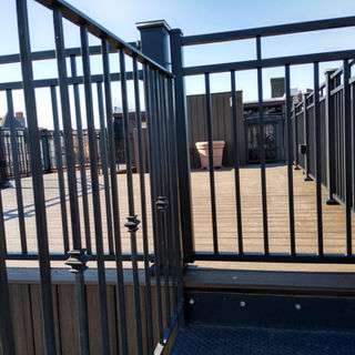This project entailed renovating an existing roof deck that was failing. New beams, joists, decking, railings, skirt, lighting and steps.